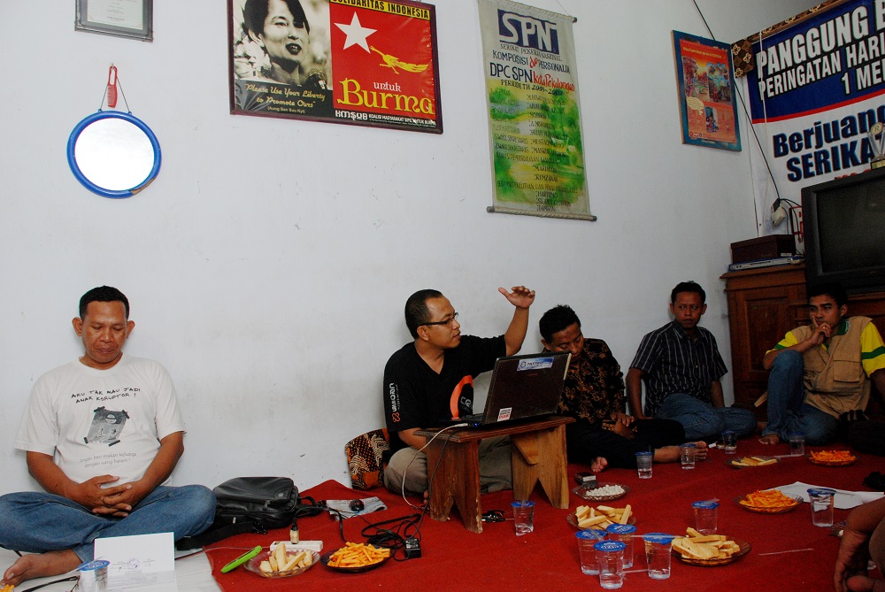 The meetings discussed topics beyond labour rights - in this meeting, NGO activists and union members discuss government budget monitoring in Pekalongan. (Hari Nugroho)