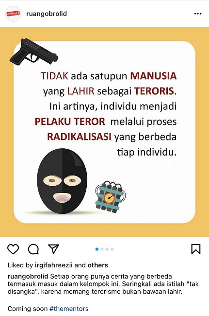 'No human being is born a terrorist. This means that individuals become terrorist actors through a different radicalization process for each individual.' / RuangObrol Instagram