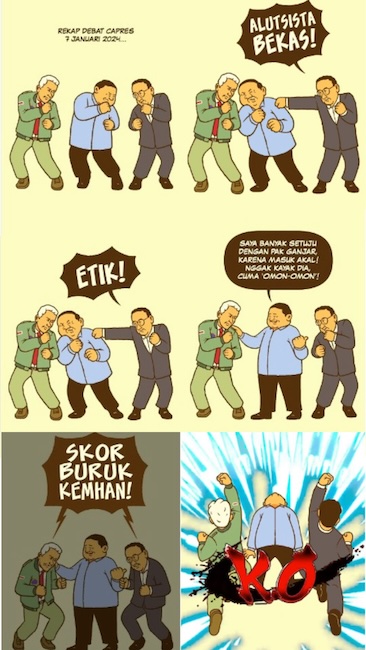 Stills from an animation posted on Instagram by artist Haryadhi, depicting the atmosphere of the presidential debates / Instagram @kostumkomik