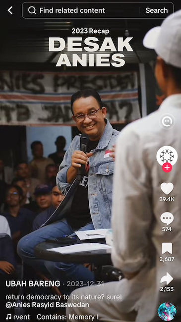 Anies’ supporters created TikTok compilations of his Desak Anies tour, effectively painting him as a truly democratic leader /TikTok